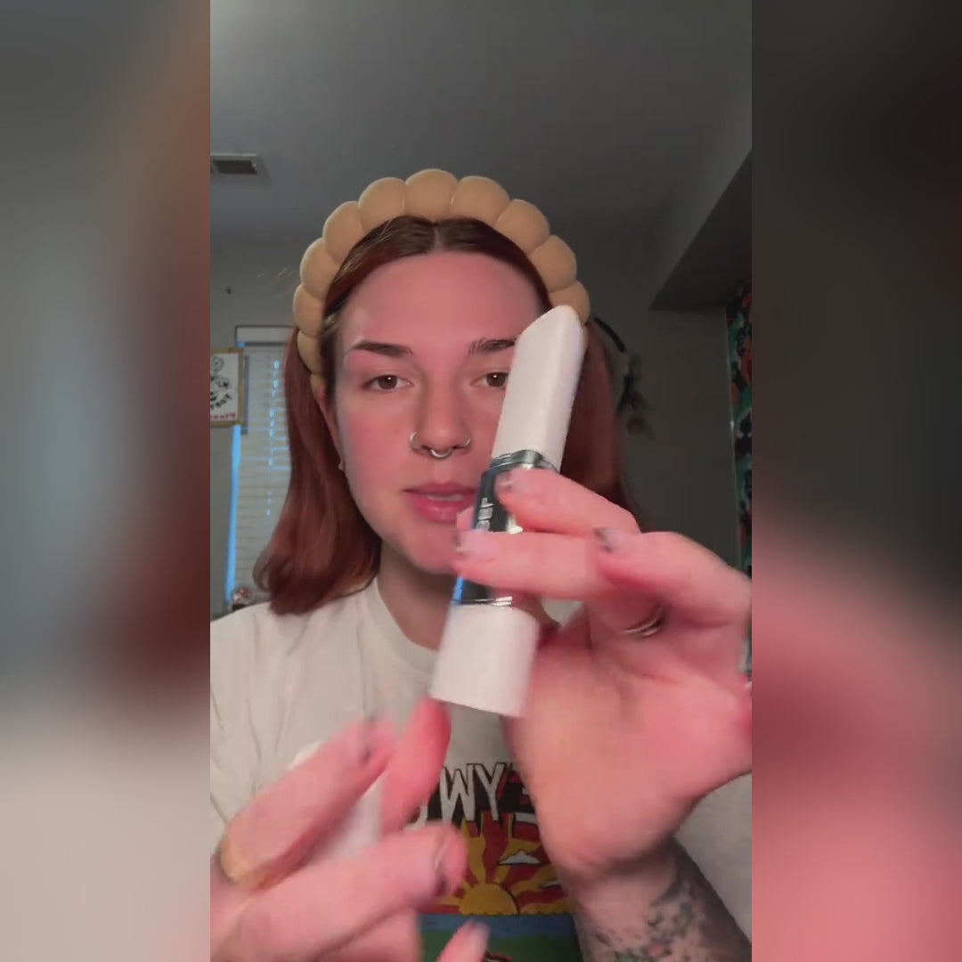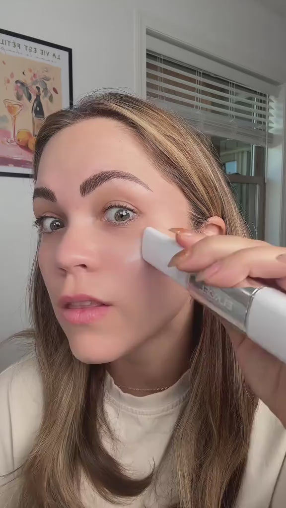 The stick starts white, then transforms as collagen capsules break open and adapt to your unique skin tone with each stroke.