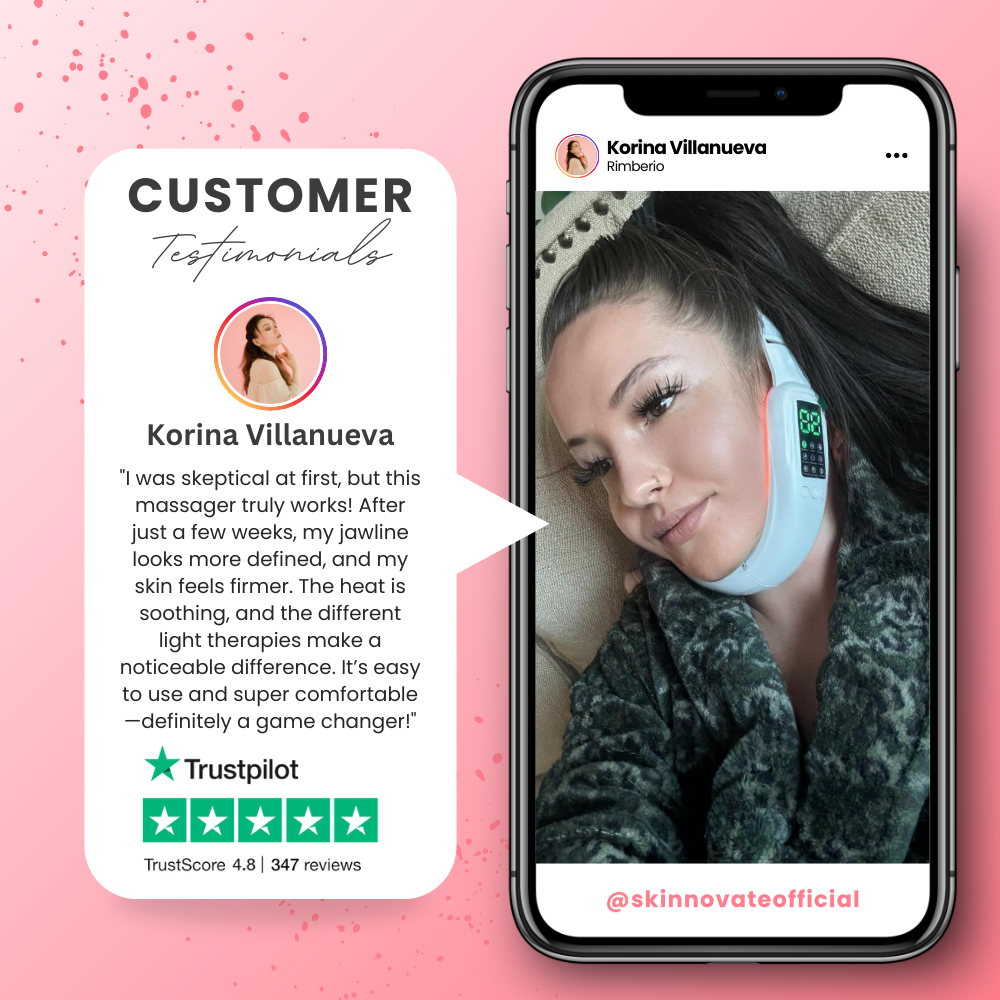 "This massager has completely transformed my jawline! The infrared heating and red light therapy really made a difference. My chin looks more sculpted, and the swelling has gone down. Totally worth it!"